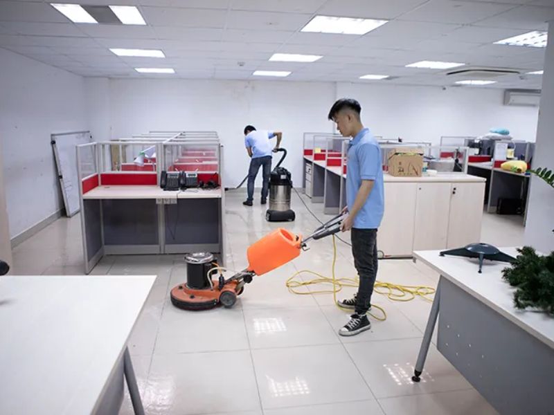 Tổng vệ sinh cho sàn nhà, phủ bóng bằng hoá chất.