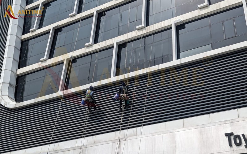 Dự án vệ sinh kính mặt ngoài tòa nhà SAMCO do Công Ty Cổ Phần Anitime đảm nhận!