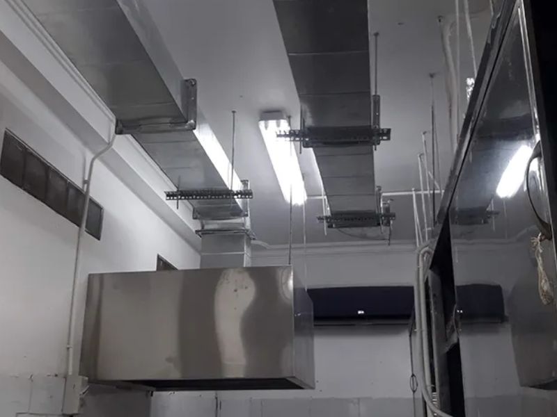 In addition to the kitchen and exhaust system layout drawing, the location of the smoke duct construction also plays an extremely important role. The pipeline will be designed on the ceiling of the industrial kitchen area, so it will need to be calculated so as not to affect the moving position and how to move to save the most on the pipeline.