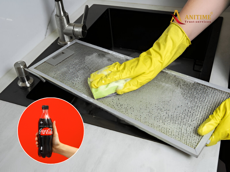 - Dầu mỡ sẽ từ từ bong ra nhờ axit nhẹ trong nước ngọt.
